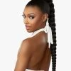 Simply cover your natural pony or bun with this bun and bang combination to